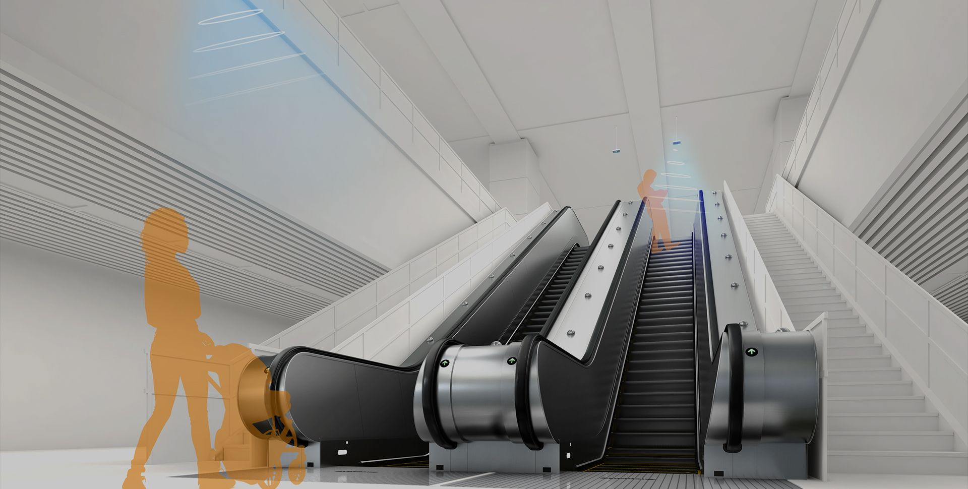 适用于客流量中等,使用频度低的场合,如机场、人行道天桥、会展中心、规划客流少的高铁/火车站。