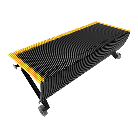踏板位于裙板下方运行,消除踏板与裙板的侧向挤压缝隙,使用更安全